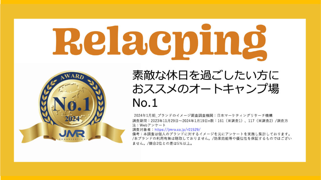 全国のオートキャンプ場利用経験者または知見者を対象にした日本マーケティングリサーチ機構(JMR)によるアンケート調査で、素敵な休日を過ごしたい方におススメのオートキャンプ場として第1位を獲得いたしました。 オープンから1年を過ぎ、皆様に喜ばれ...