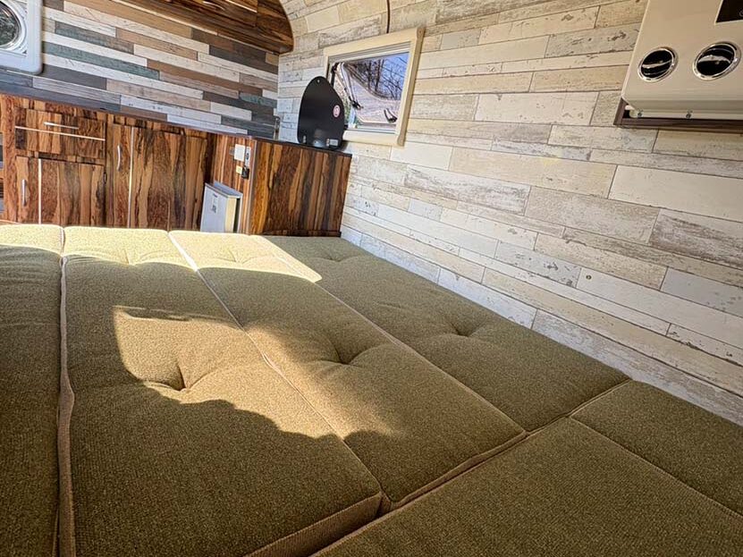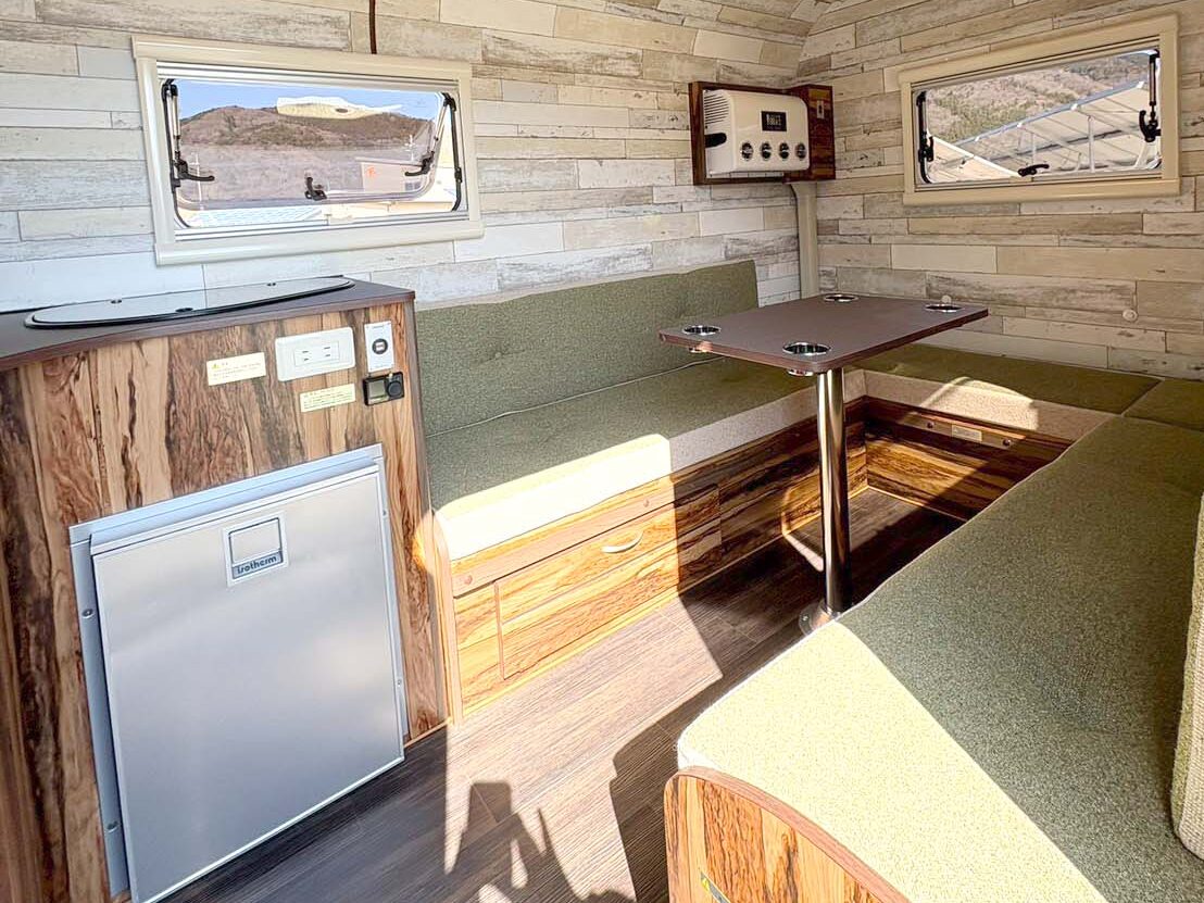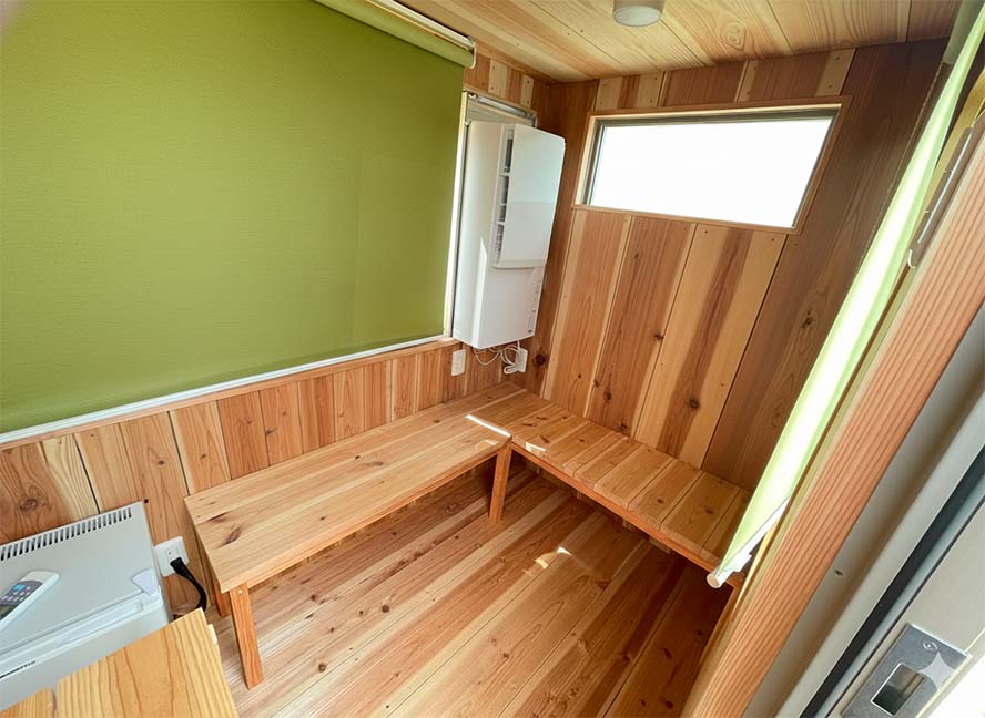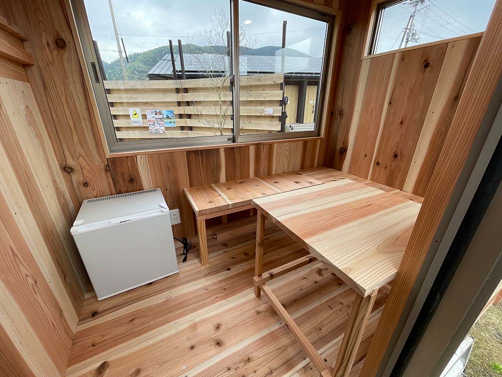 お子様と愛犬が専用ドッグランで元気に駆け回る姿をのんびり眺めながら、大人は木の温もりに包まれた室内でホッと一息。遊び疲れた後のお昼寝スペースや、急な雨の日のくつろぎ場所、そしてノンキャンピングカーでの車中泊時の広々としたリビングルームとしても最適です。